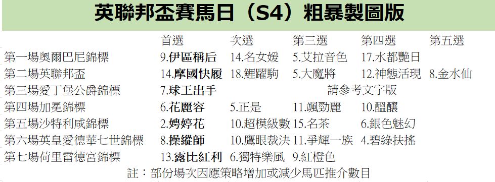 第二場英聯邦盃,「摩國快履」兩歲時贏出鳳凰錦標,三歲時亦贏出一場三級賽,已經在此戰備戰充足。「鯉躍駒」面對英國馬的征戰下,仍能於表列賽大勝三個馬位,難怪以補充報名參加。「大魔將」具有一定爭標實力,雖然在沙迪里失利,但有力重新爬回來,不要忘記頭馬無法參與此賽。「神態活現」曾經贏出莫尼大賽,雖然被「摩國快履」但仍然是爭上名。「金水仙」於法國二千堅尼奪亞發揮出水準,雖然縮程上陣,但絕對是一匹實力黑馬。