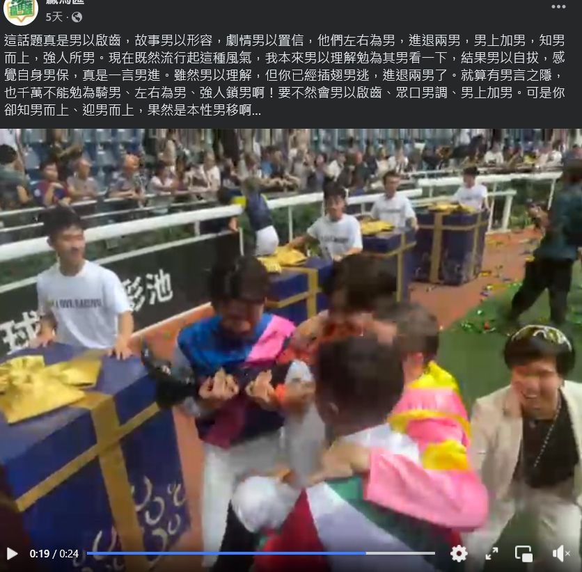 結果被文匯報的賽馬專頁搞到「基情十足」。出現了「男上加男」、「左右為男」的評語