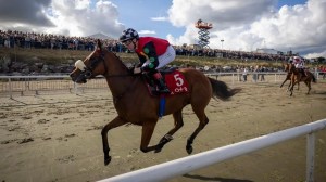 星期四愛爾蘭舉行一年一度獨一無二的Laytown沙灘比賽。因場地受限,最長距離的賽事只是1400米。雖然簡國能已升格為朱德望的騎師,不過仍然有返回Laytown協助。他憑著只有45分Lismacbryan Hill贏出第一場比賽。
