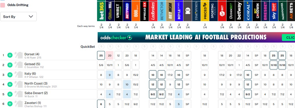 星期日除了四場愛爾蘭轉播賽外,還有三級賽奧蘭治公爵錦標。原因是「北十字星」(Croix du Nord、クロワデュノール)參戰,由於贏過一級賽關係,需要與年長馬負同一負磅。主要對手有贏出表列賽的Uthred。「得令星」(Dary)於國際錦標慘敗以及贏出表列賽的「加固」(Bolster)