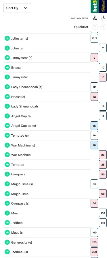 目前五戰全勝,並贏出Beholder一哩錦標的Cavalieri,將不會出戰育馬者盃雌馬大賽。巴富達表示需要時間休息,並將於賽場回歸。