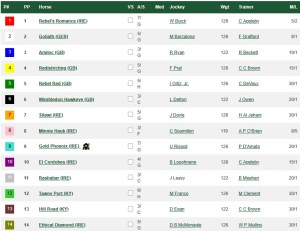 育馬者盃14項一級賽已於星期一排位,我們先提供賠率資訊,星期三及星期四一次過進行前贍。留意的是Equibase提供的Morning Line是賽日預測賠率,並非固定賠率投注