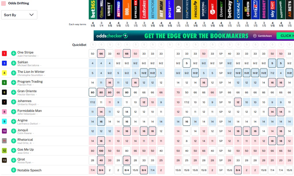 育馬者盃草地大賽,「桀驁之戀」能不能以這個馬齡於頂級賽事應付密集賽程,去年於此馬場奪冠,雖然差點被看低的日本馬追過,但以去年的表現來看,有力再一次稱霸。「猛雷」自贏出英皇愛德七世錦標後繞道而行,最終角逐愛爾蘭聖烈治大賽跑獲亞軍,整體實力不足於此。「劇唱一姐」於凱旋門大賽奪亞的表現,有望成為大熱,但是可能會被過度注仙視,第三選已足。「鷹眼裁決」於美國賽事由戴圖理接手,發揮相當不錯,已經於肯塔基馬場贏出三級賽,可以值得支持。