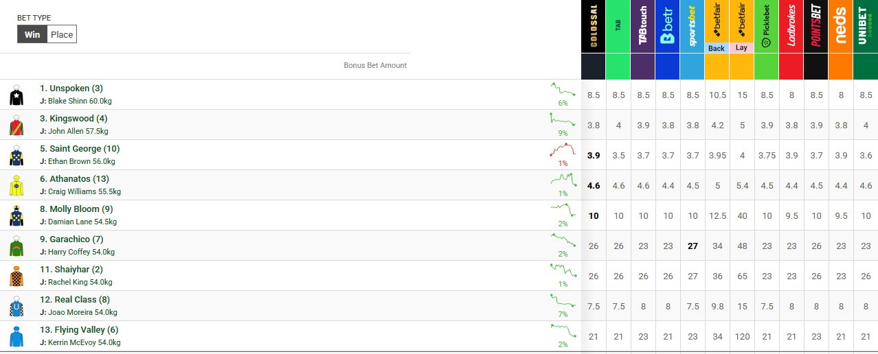 第三場墨爾本盃賽馬日碟,去年參與墨爾本盃的「聖喬治」上月於西摩盃復出跑獲亞軍,狀況不錯,即使縮程1800米也沒有問題。「寫意遊」去年於此賽跑獲季軍,最近於滿利谷覺士盾前夜亦贏出一場2040米讓賽。「不朽神駿」連續於沙丘園錦標以及杜勒讓賽有好表現,降格角逐現真身