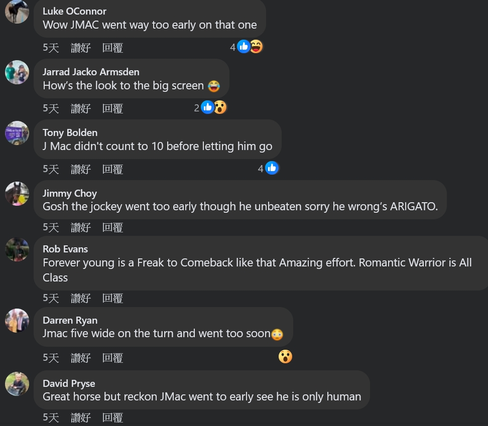 香港馬迷原本很高興,期待可以「浪漫勇士」勝出