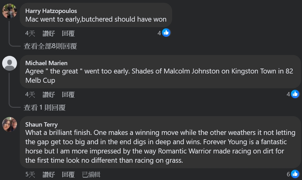 不過狂小編錯了,從Punters以及Racing Post也看到這些留言