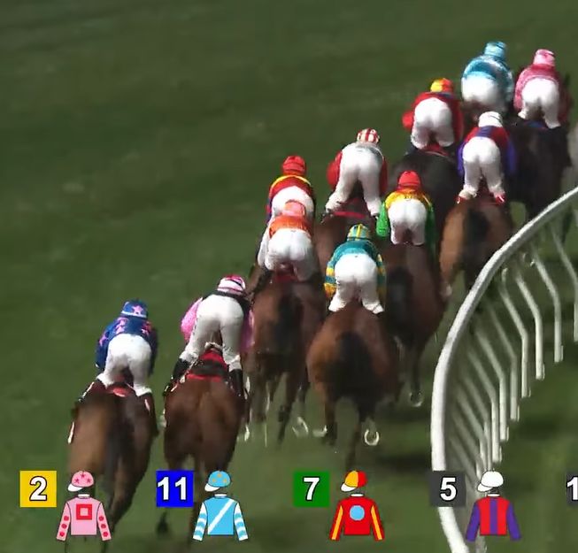 「天將龍駒」過往留在大後方,一追上了,曾試過落後超過15歲馬位反勝。