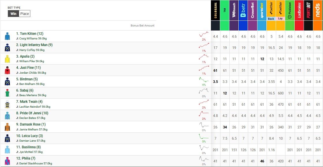 星期六於杜拜世界盃前,還有四場轉播賽,其中兩場是一級賽。首先是澳洲盃,「天鳥俠義」(Birdman)成功由長途馬,改為主攻一哩及中距離馬匹,今場賽事成為大熱。「珍蓮驕驥」(Pride of Jenni)以大逃聞名,秋季初出跑獲季軍。接著有全明星一哩賽冠軍「倜儻小貓」(Tom Kitten)。黑馬有西澳二級賽取下勝利的「寫意遊」(Apulia)還有全明星一哩賽跑獲第四的「勝步」(Sabaj )。