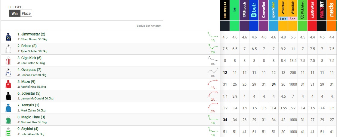 星期六澳洲唐加士打一哩賽日,轉播八場賽事,其中四場為一級賽,史密夫錦標出馬較少,「占美新星」(Jimmysstar)半信半疑之下最終上陣。主要對手為參加皇家雅士谷前最後一戰的「早麗星」(Joliestar),贏出閃電錦標的「尼河市鎮」(Tentyris),準備第四度參加西澳Quokka錦標的「登天橋」(Overpass)以及潘頓策騎的「勁力猛擊」(Giga Kick)也可以亂局。