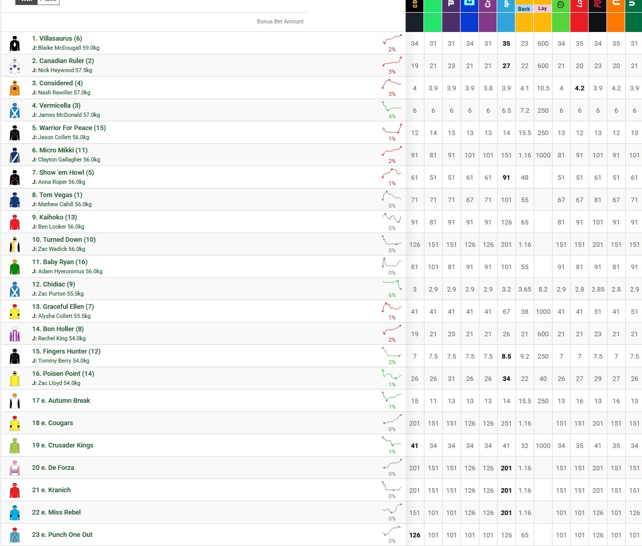 兩項於週五滿利谷夜賽舉行的萬利嘉多錦標以及摩亞錦標有新賽期。因應滿利谷馬場進行全面翻修,賽期有所舉動。萬利嘉多錦標則在澳式足球總決賽後的星期日舉行,原因考菲爾德馬場照明能力不足以舉辦夜賽,否決了週五黃昏賽事,週六賽事為避免與澳式足球總決賽撞期,避免安排大賽。至於摩亞錦標則在費明頓馬場覺士盾賽日舉行,此外事於2010年及2011年由「魚子精華」(Black Caviar)連贏兩屆後,改為九月週五夜賽進行。相信伊雲錦標改在沙丘園一個賽事日舉行。