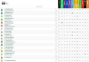 至於不羈名駒錦標爆出冷門。於兩歲時相當強勢的My Highness不敵,雖然在最後階後與Isle of Fernandez與Showna齊齊追上,但在最後100米見弱,最後被Kendargent子嗣Showna(郝雷迪)爆大冷。不過練馬師小林智表示,Showna將於莊柏德大賽為目標。
