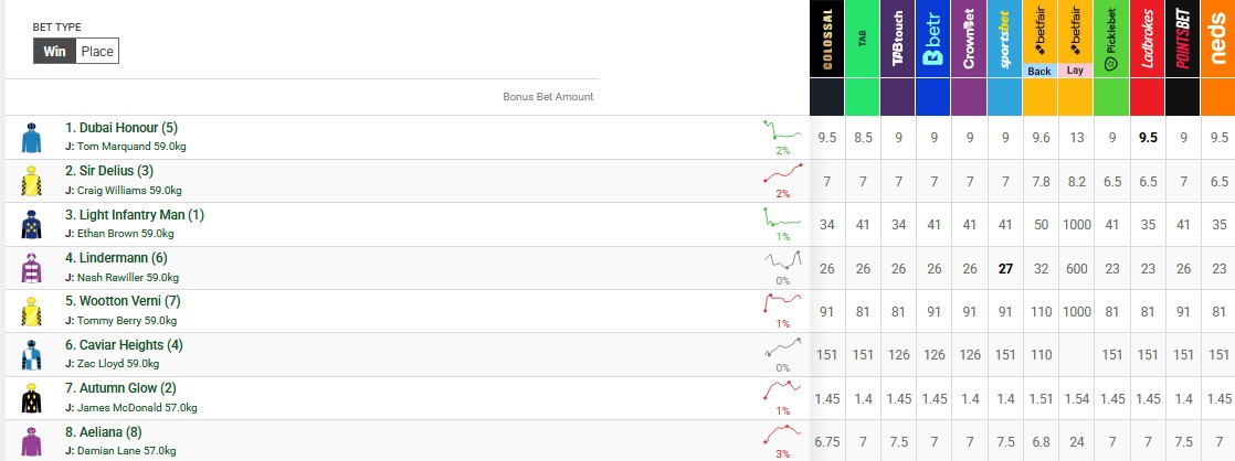 星期六女皇伊利沙伯錦標賽馬日已經排位。伊利沙伯錦標有八駒上陣。來自英國的「譽滿杜拜」(Dubai Honour)會否就此兩手空空呢?因為需要面對不敗良駒「秋暉」(Autumn Glow)。華禮納有力憑「陽光小姐」(Aeliana)包辦連贏。此外還有秋季狀態不算理想的「國民樂派」(Sir Delius)。贏出澳洲盃的「輕取勝」(Light Infantry Man)有力左右大局。「力先生」(Lindermann)靠放突圍,「活頓光華」(Wootton Verni)料成超級大黑馬。此外還有「譽滿杜拜」的快樂夥伴「高級珍味」(Caviar Heights)。