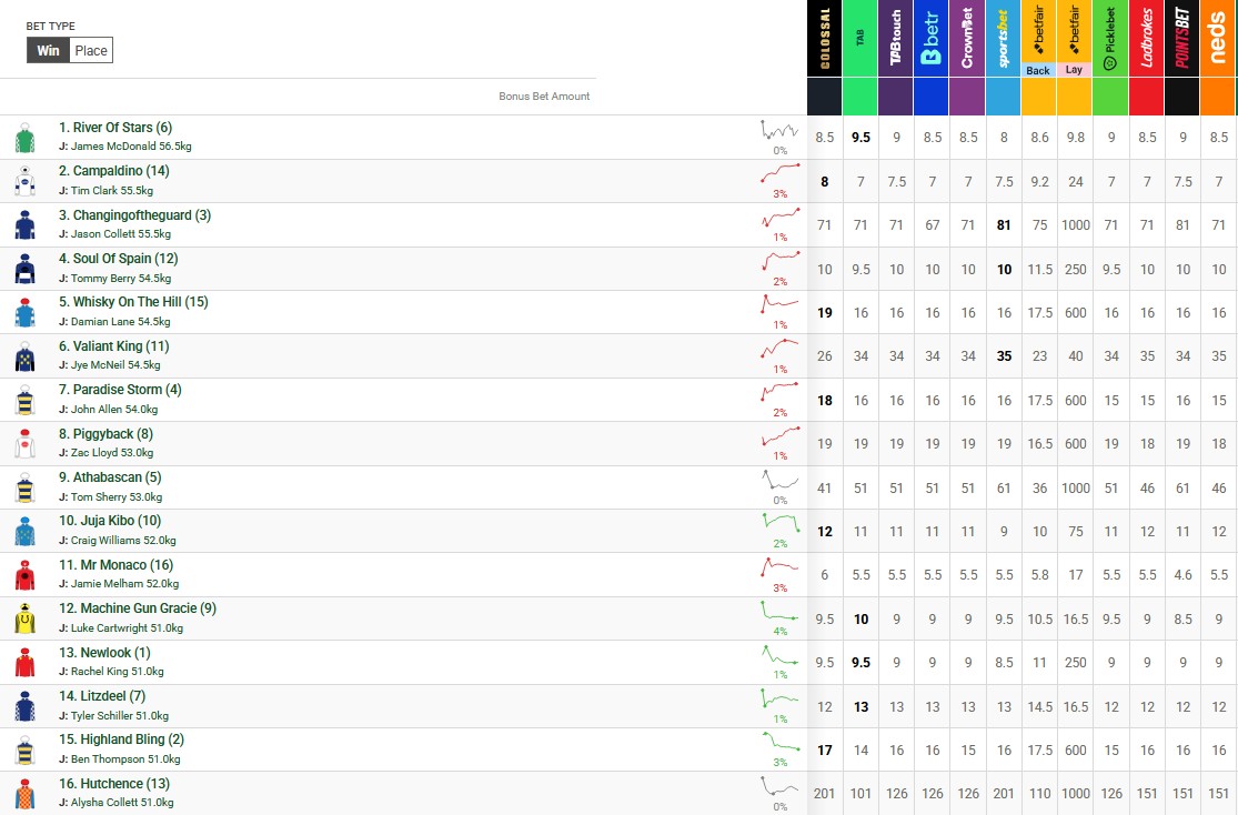 兩年前於殷利殊復活節拍賣會中,以1000萬澳元紀錄的「雲絲仙子」(Winx)女兒Quinceanera不會上陣。馬主表示考慮到獸醫建議以及華禮納考慮,決定讓這匹三歲雌馬不會參與競逐任何比賽,將投入繁殖。