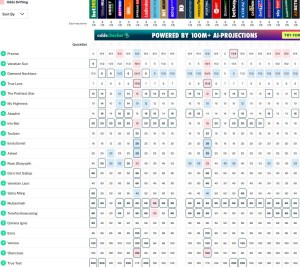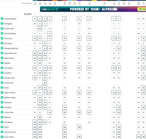 肯塔基打吡大賽已經在星期六排位。Renegade原本成為熱中之熱,但是排在1檔,起步如果有擠撞,輸了八成。其他成為預測賠率的熱門有大勝藍草錦標的Further Ado,但需要克服18檔。佛羅里達州打吡季軍Chief Wallabee因賽事失運亦受到支持。Commandment則在佛羅里達州賽事兩戰全勝,頗有氣勢。日本馬方面,較為看好Danon Bourbon(ダノンバーボン),排在7檔上陣。