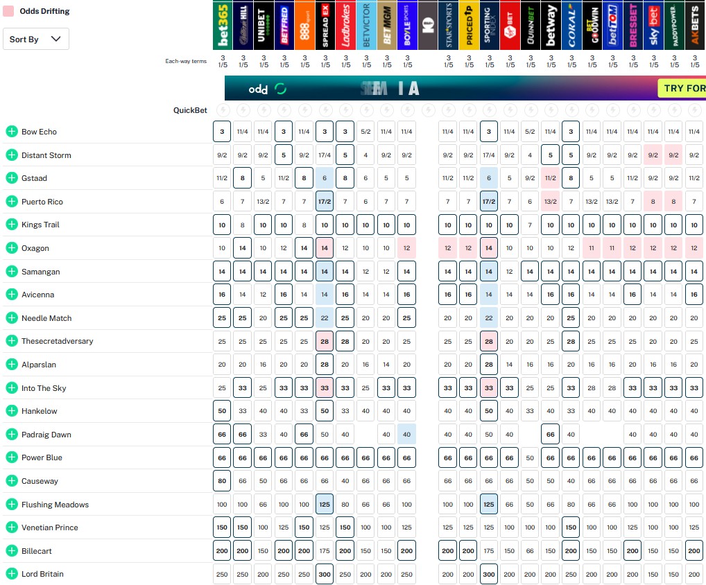英國公佈二千堅尼錦標及一千堅尼錦標等報名馬,報名馬相當擁躍。仍然有20匹馬留位,其中有兩匹補充報名。分別是之前錯誤刪除報名的「雪嶽區」(Gstaad),另外早前於紐卡素膠沙地表列賽跑獲亞軍的Padraig Dawn亦以補充報名身份上陣,當然就沒有Albert Einstein。岳伯仁仍然排出「波多黎島」(Puerto Rico),目前奪標大熱仍然是Bow Echo。其他主要馬匹有格拉咸錦標冠軍「工業浮城」(Oxagon),高多芬秘密武器「遠天風」(Distant Storm)。